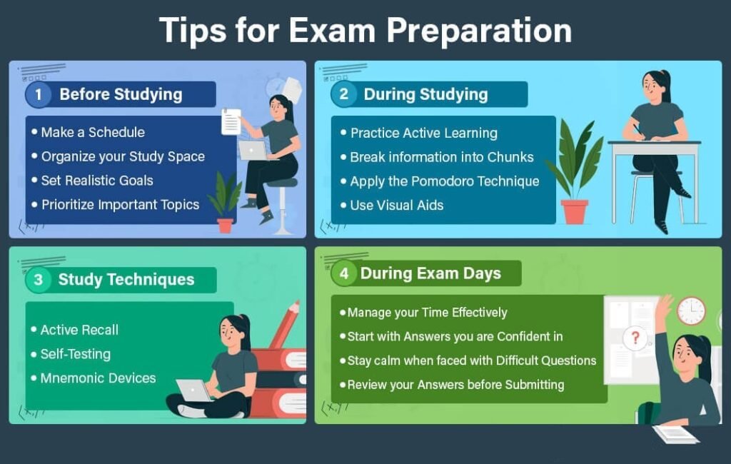 When time is short, many students panic or waste energy on unplanned efforts. Having clear study strategies for exams ensures you don’t get overwhelmed. Instead of reading everything randomly, these exam preparation tips help you: